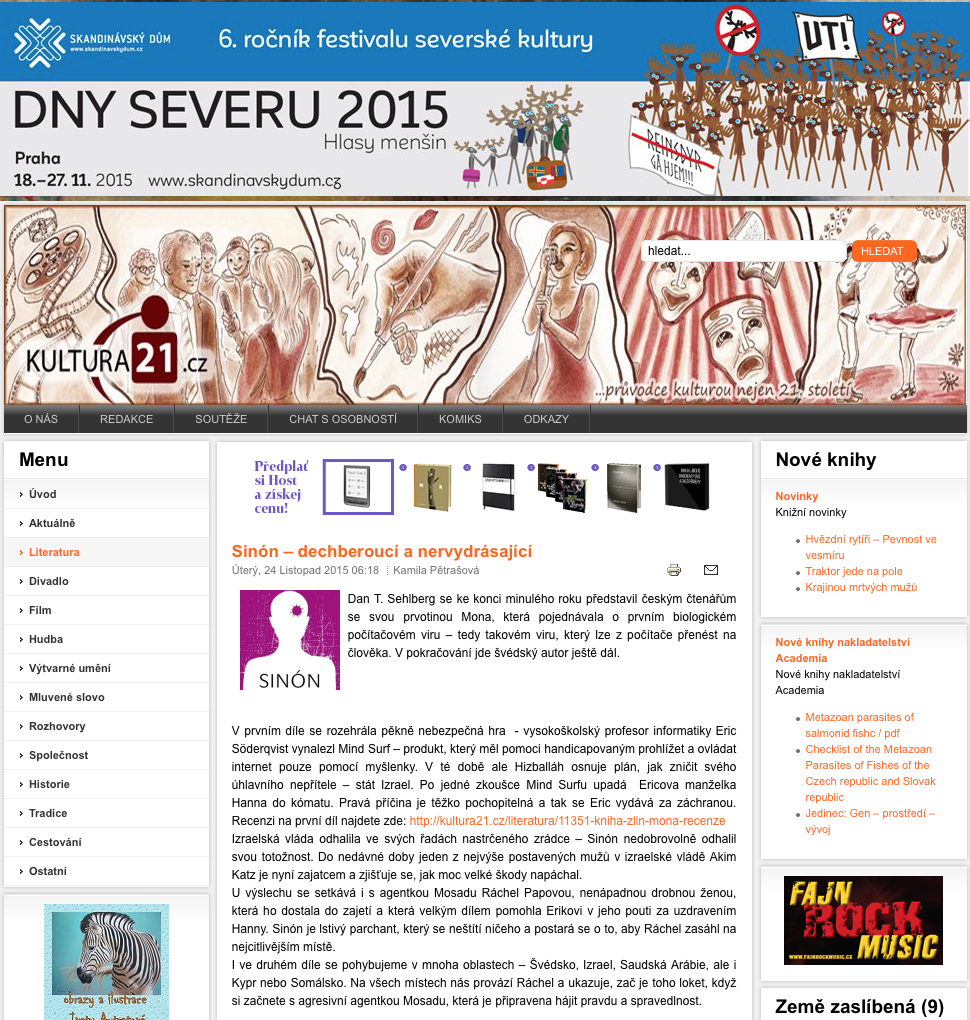 Leading Czech crime blog Severskedetektivky has reviewed SINON: